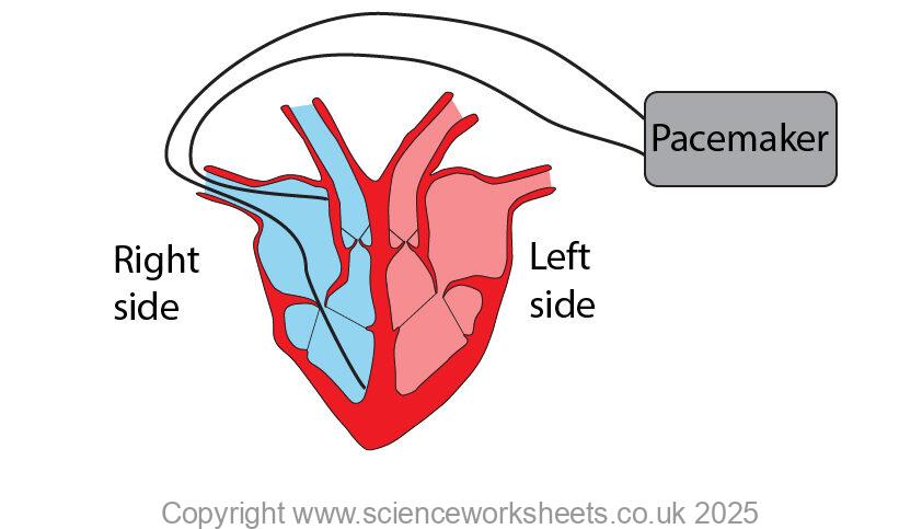 This natural pacemaker needs to be replaced with an artificial pacemaker to correct this irregular heart rate. The artifical pacemaker is placed under the skin, but it has wires, which connect to the heart. An electrical impulse sent along these wires will cause the heart to contract.